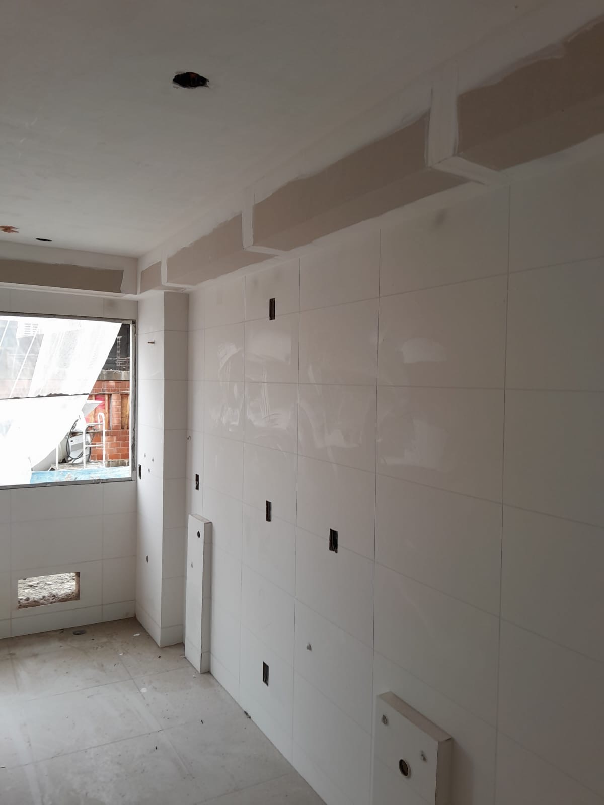 O apartamento possui piso porcelanato em todos os ambientes e conta com uma sacada equipada com churrasqueira, ideal para momentos de lazer. Nas áreas de serviço, cozinha e banheiro, o revestimento cerâmico se estende até o teto, garantindo maior durabilidade e fácil limpeza.